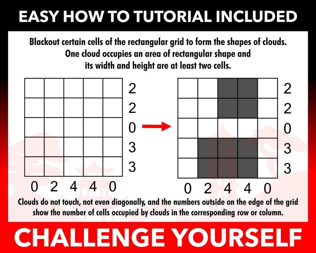 Clouds Logic Puzzles MIX 200 Grids | Learn to Solve Series | Digital Puzzle Book | Volume 1 | Hyperlinked PDF for e-Readers